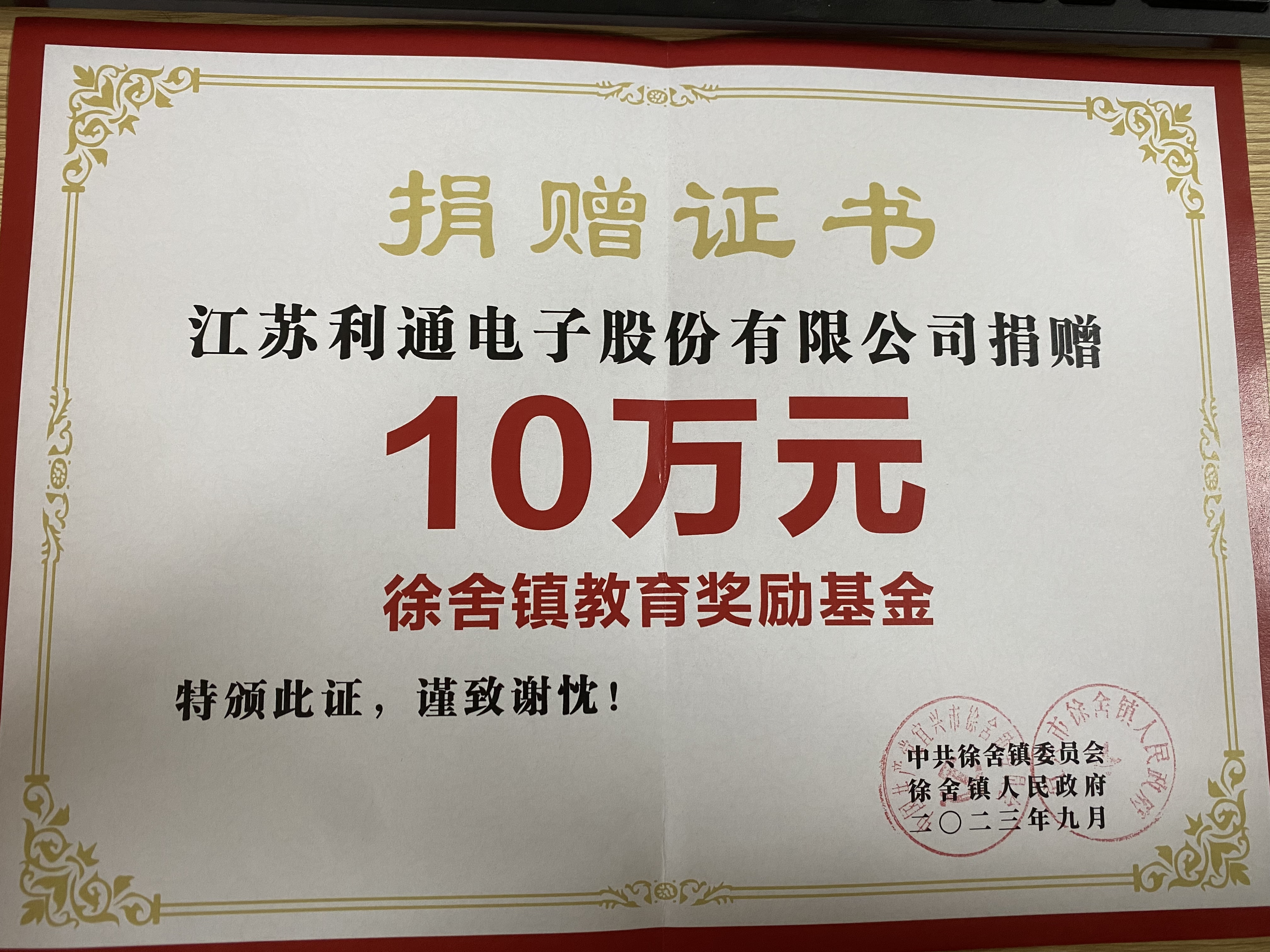 2023年9月8日上午,徐舍鎮(zhèn)隆重召開慶祝第三十九個教師節(jié)暨2023年度教育工作會議。利通電子認(rèn)捐10萬元,支持徐舍鎮(zhèn)教育事業(yè)的高質(zhì)量發(fā)展。我司作為慈善捐贈愛心企業(yè)受邀參加此次會議。利通一直樹立以人為本的企業(yè)文化,在關(guān)注自身發(fā)展的同時,也用實際行動踐行著企業(yè)的社會責(zé)任,積極倡導(dǎo)愛心公益,情系教育,心系發(fā)展,為教育事業(yè)貢獻(xiàn)自己的一份力量。
